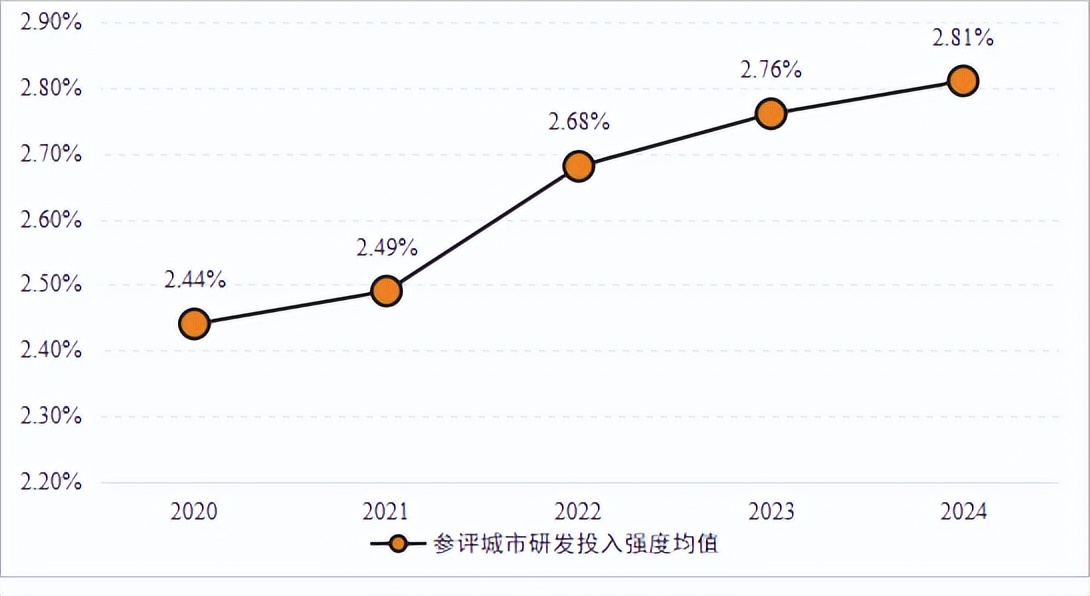 图3 2020—2024年参评城市研发投入强度情况