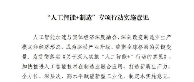 这份文件不是普通指导意见,而是国家层面“人工智能+”行动在制造业的落地版。